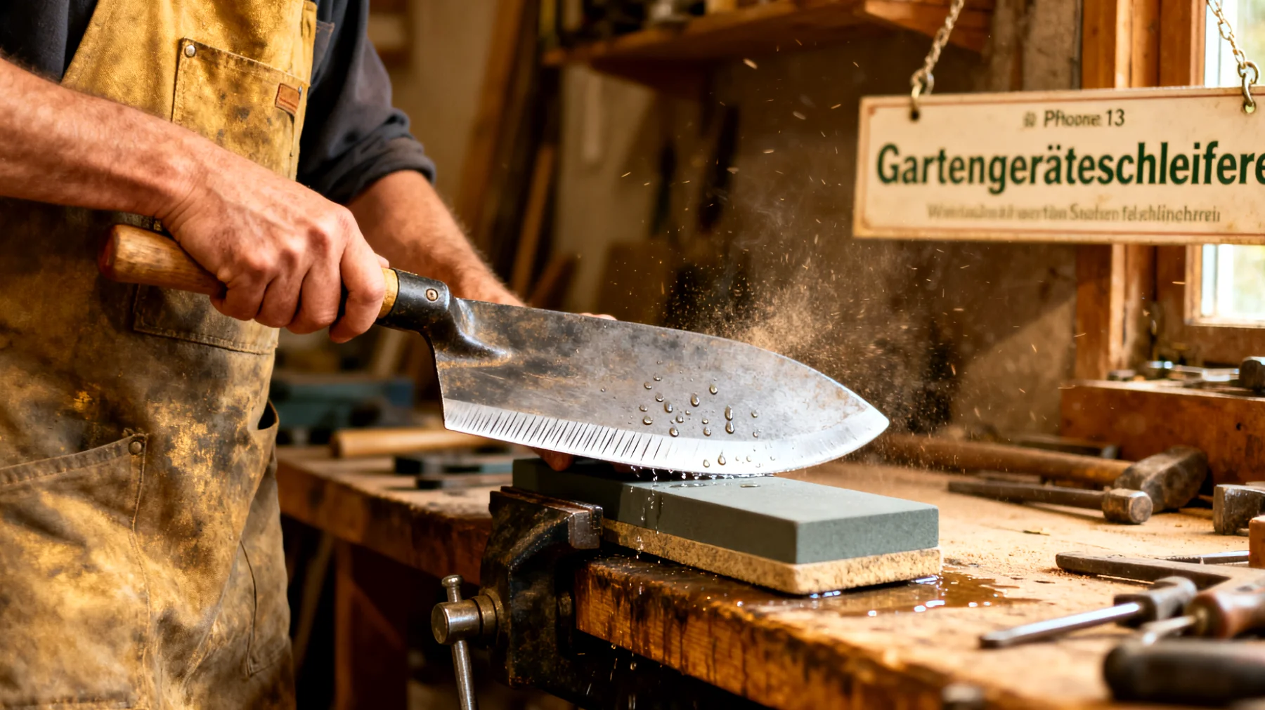 Bei zu starker Erwärmung kann das Gefüge verändert werden – der Stahl verliert seine sorgfältig eingestellten Eigenschaften. Ein praktisches Hilfsmittel ist Wasser- oder Nassschliff auf einer feinen Schleifscheibe. So lässt sich Material abtragen, ohne den Stahl zu überhitzen. Nach dem Schleifen bewirkt ein leichter Auftrag von Öl auf der Klinge nicht nur Korrosionsschutz, sondern auch eine mikroskopische Glättung der Oberfläche, was die Reibung beim Hacken verringert.